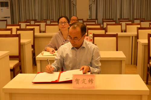 仪式最后,我校党委副书记、校长贺定修与罗勇技术学院校长Mr.Wirat Settasataporn分别代表我校与罗勇技术学院签订合作协议。