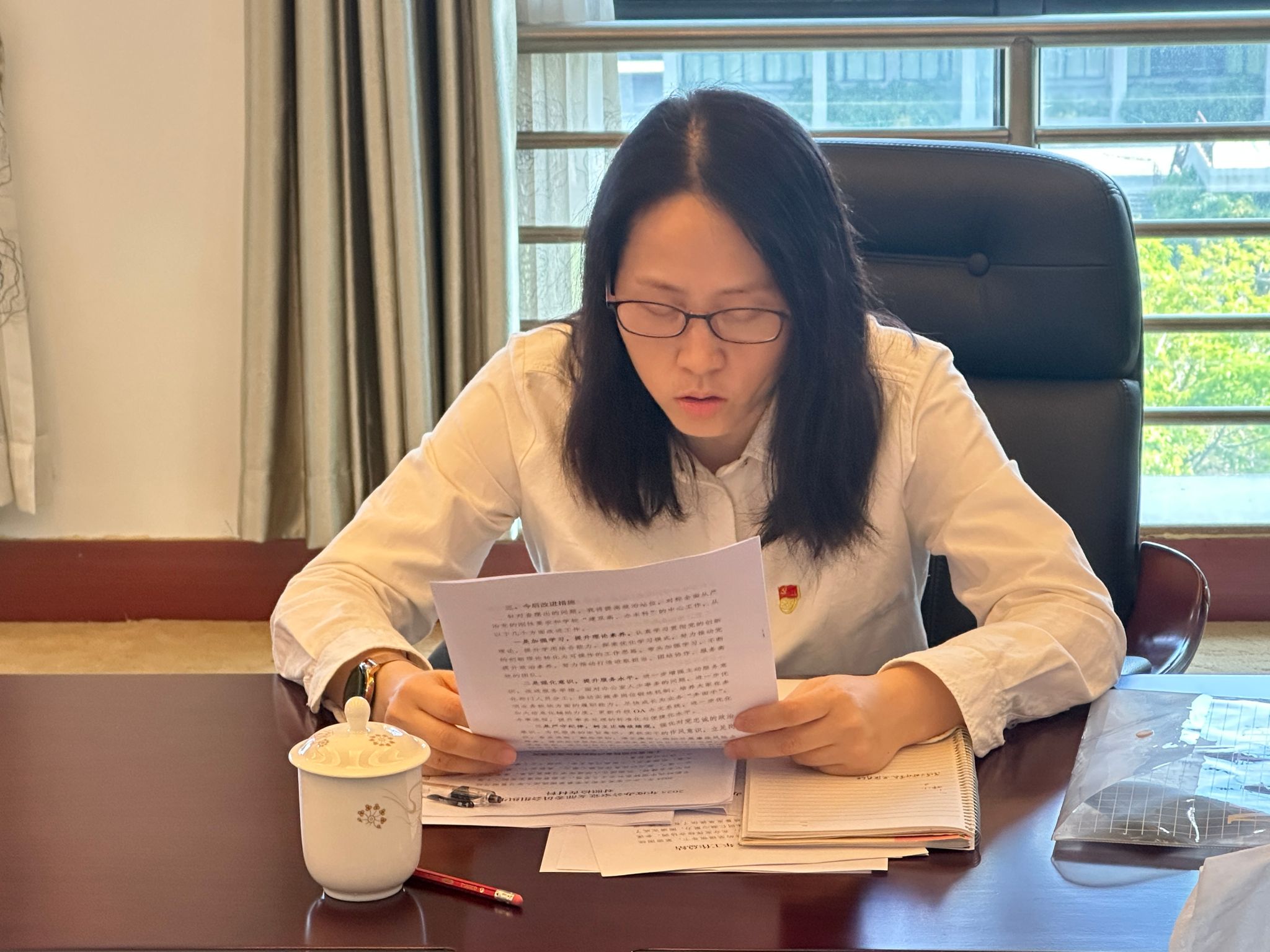 会上,支部书记郭高萍同志代表支部委员会作对照检查发言,汇报了上一年度问题整改情况并围绕“五个带头”,深入查摆了支部建设存在的突出问题,深刻剖析了问题根源,提出持续强化理论武装、深化党建业务融合、狠抓规范管理效能、勇于担当改革创新、持之以恒正风肃纪等下一步整改措施。